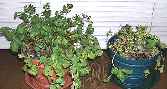 ●今まで難しかった太陽光が射さない室内で、鉢植えの植物が育つと、光合成で部屋のCO2(二酸化炭素)がO2(酸素)に変わります。又、ハーブなど植物の香りで自然のお部屋の芳香剤となります。